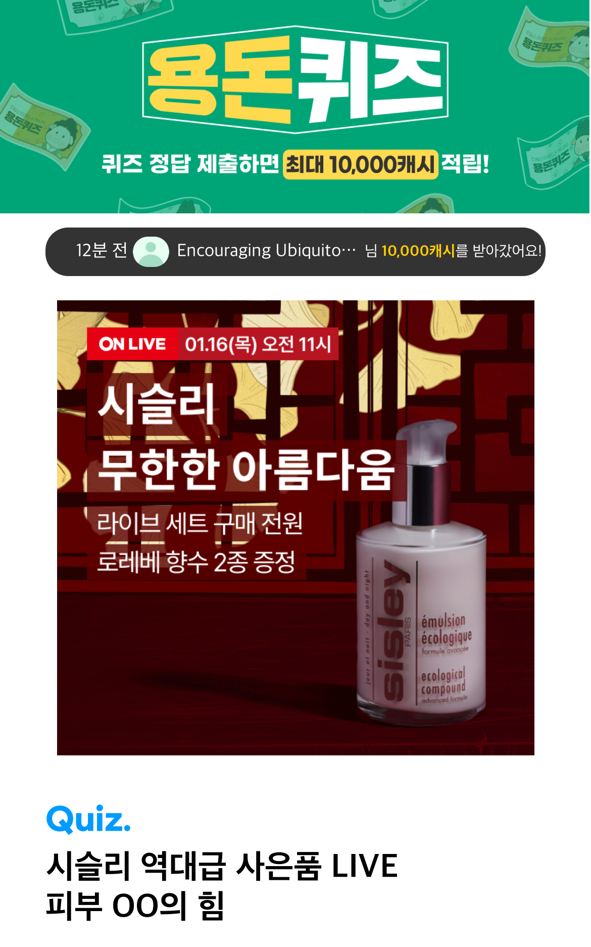 타임스프레드 용돈퀴즈 정답 G라이브 시슬리