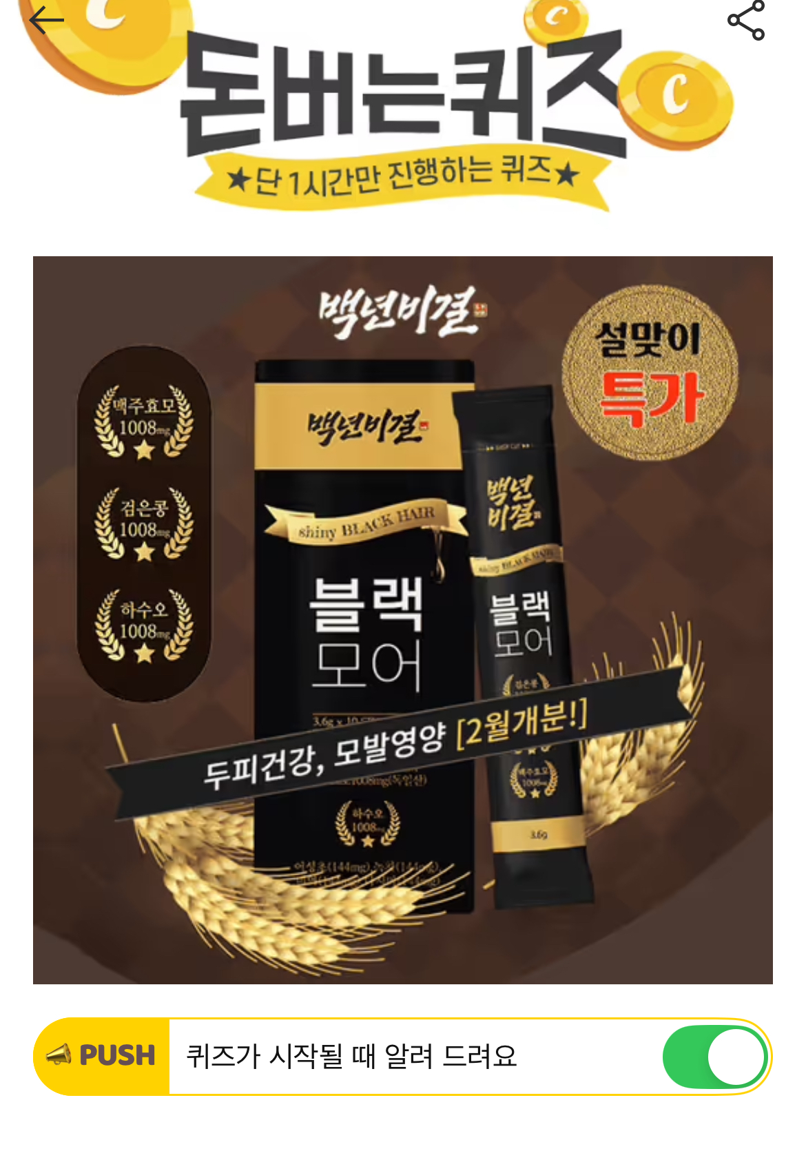 캐시워크 돈버는퀴즈 정답 캐시딜 백년비결 블랙모어 맥주효모환 OO산 맥주효모