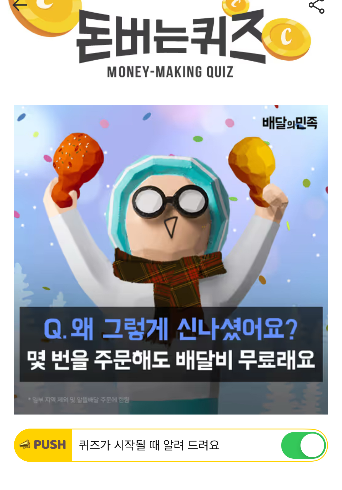 캐시워크 돈버는퀴즈 정답 배달의민족 ㅂㄷㅇㅁㅈ / ㅂㄷㅌ