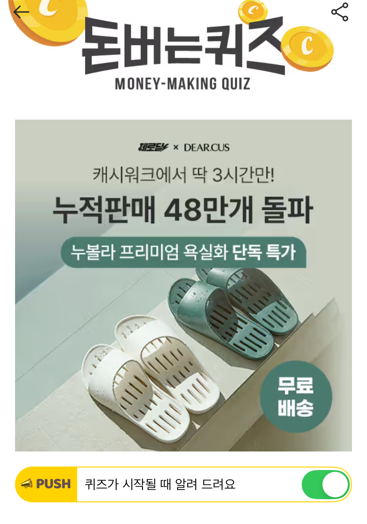 캐시워크 돈버는퀴즈 정답 누볼라 프리미엄 욕실화 ㄱㄹ
