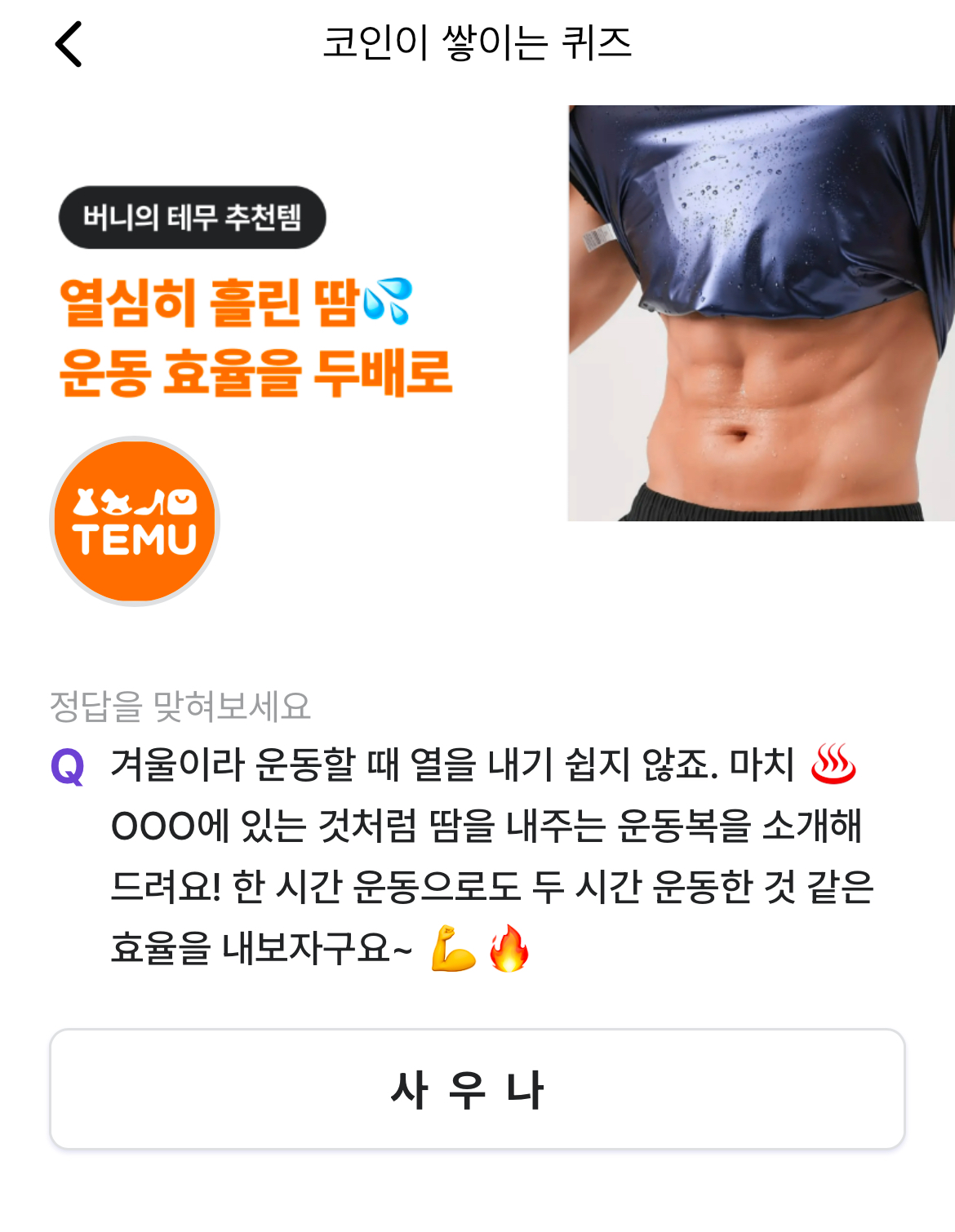 비트버니 코인이 쌓이는퀴즈 정답 테무 정답 ㅅ우ㄴ