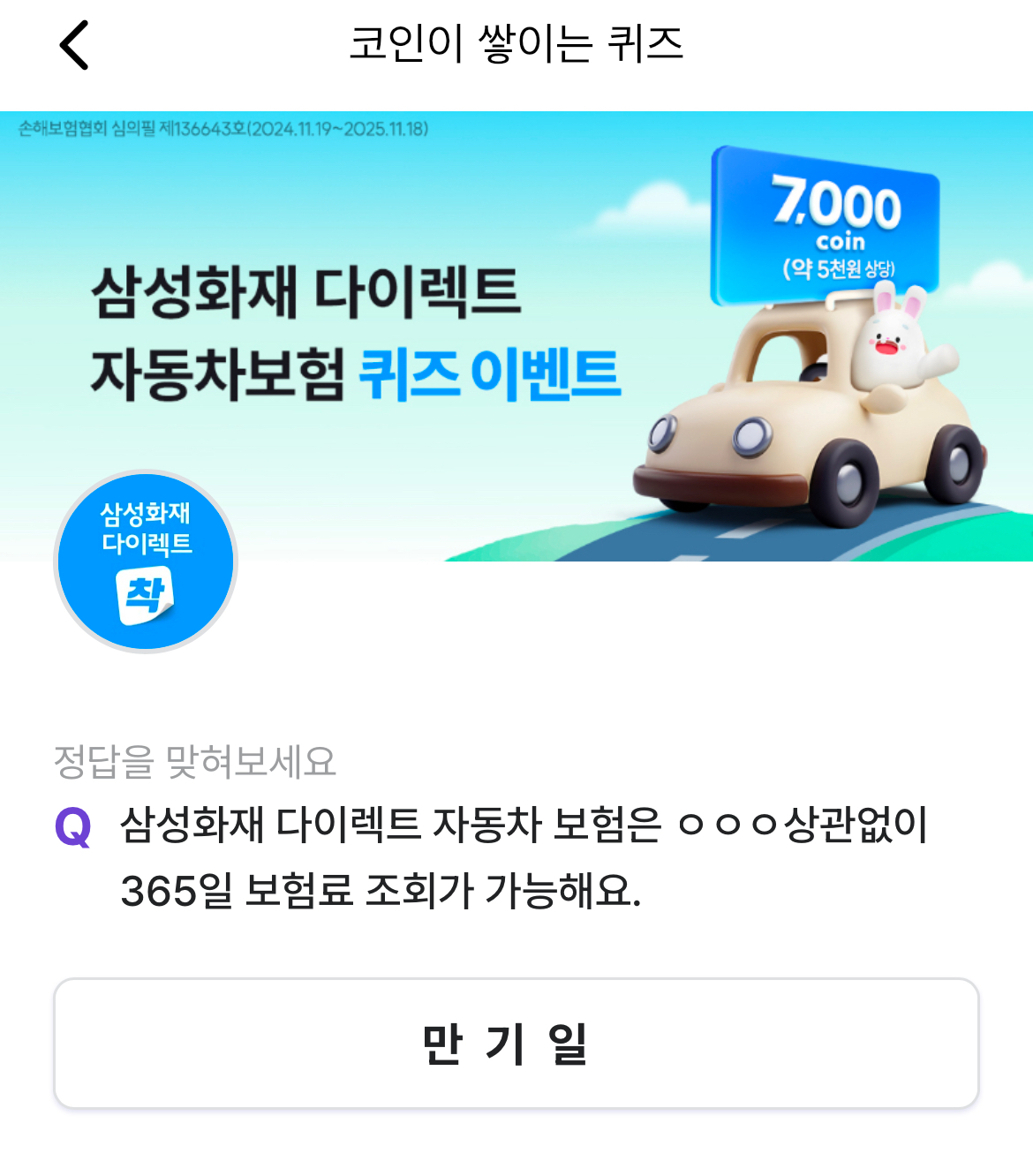 비트버니 코인이 쌓이는퀴즈 정답 삼성화재 다이렉트 자동차 ㅁㄱㅇ