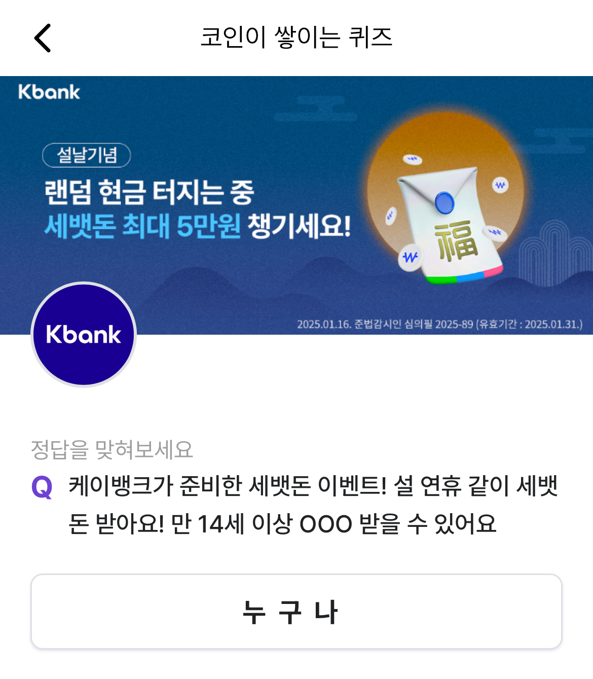 비트버니 코인이 쌓이는퀴즈 정답 케이뱅크 ㄴㄱㄴ