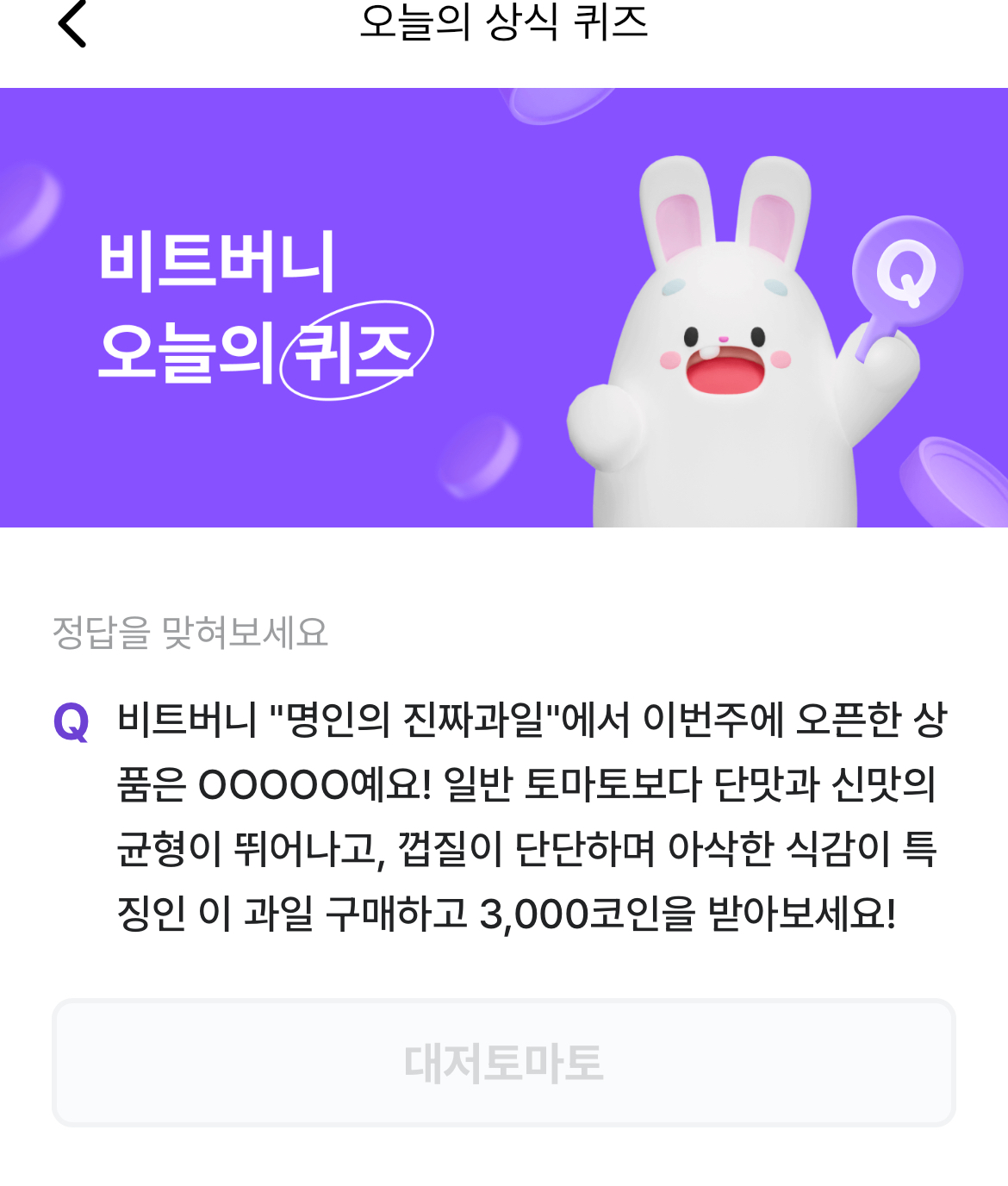 비트버니 오늘의 퀴즈 정답 ㄷㅈㅌㅁㅌ
