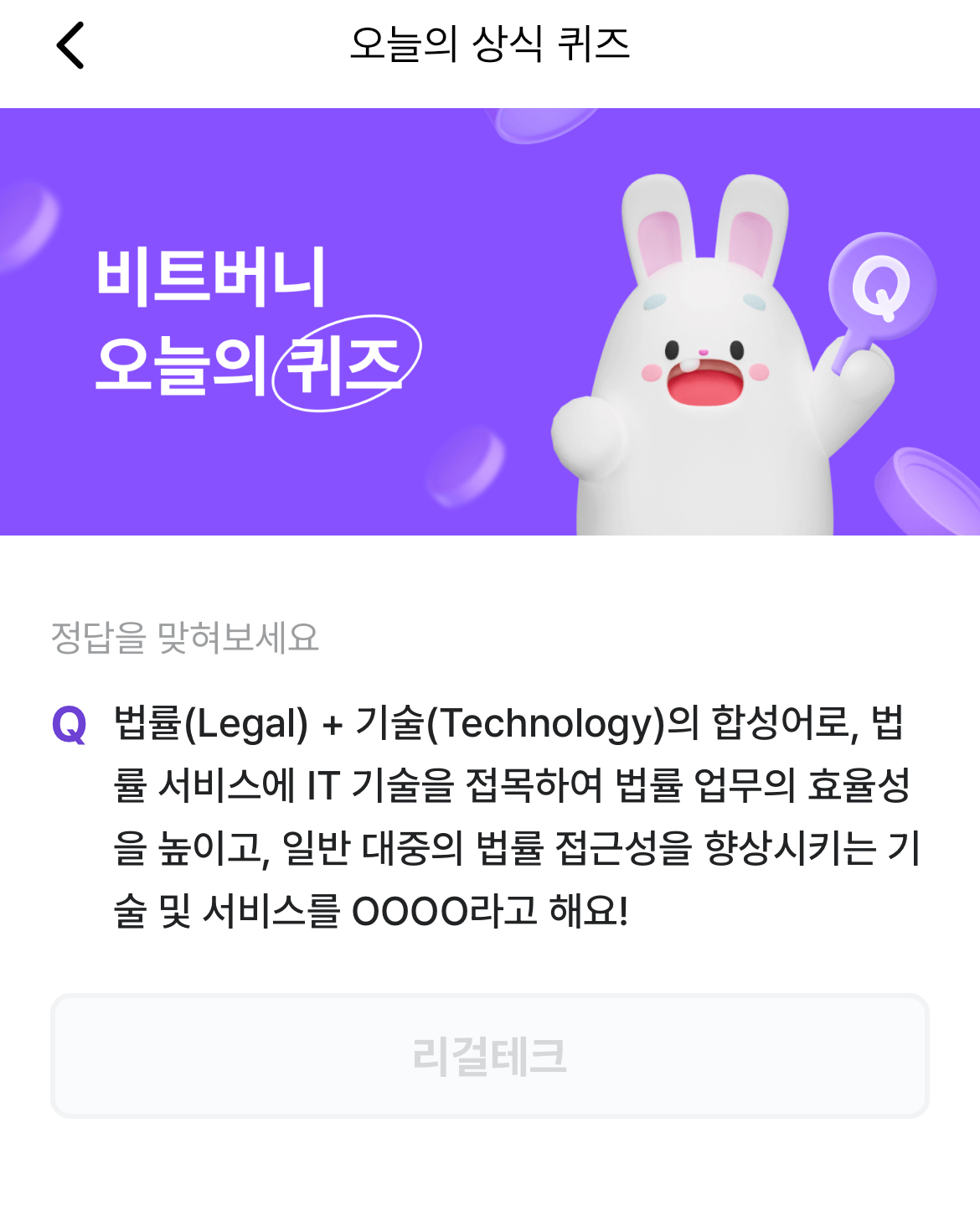 비트버니 오늘의퀴즈 정답 ㄹㄱㅌㅋ