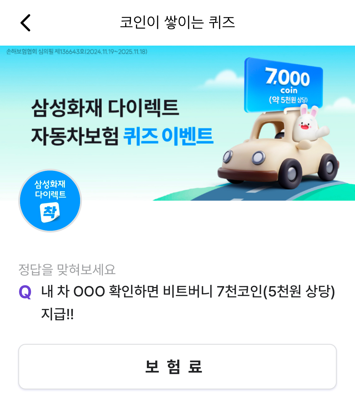 비트버니 코인이 쌓이는 퀴즈 정답 삼성화재 다이렉트 ㅂㅎㄹ