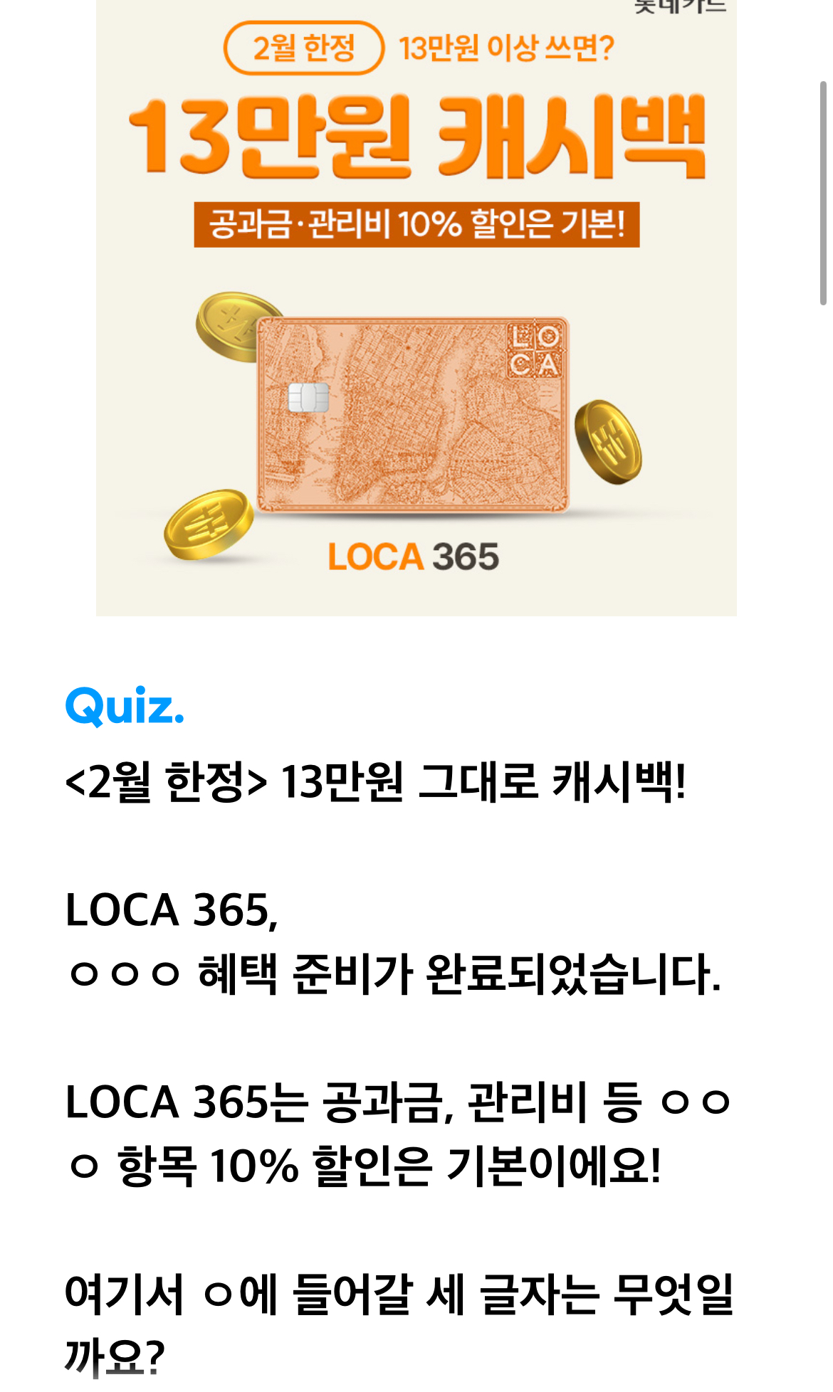 타임스프레드 용돈퀴즈 정답 롯데카드