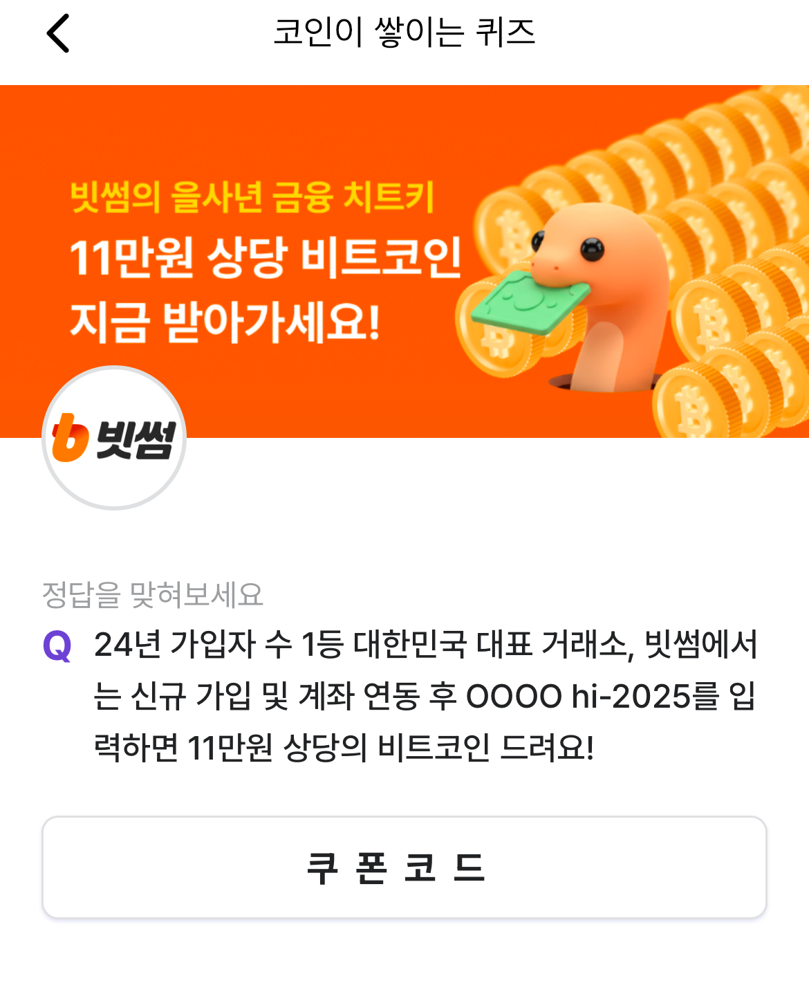 비트버니 코인이 쌓이는 퀴즈 정답 빗썸 ㅋㅍㅋㄷ