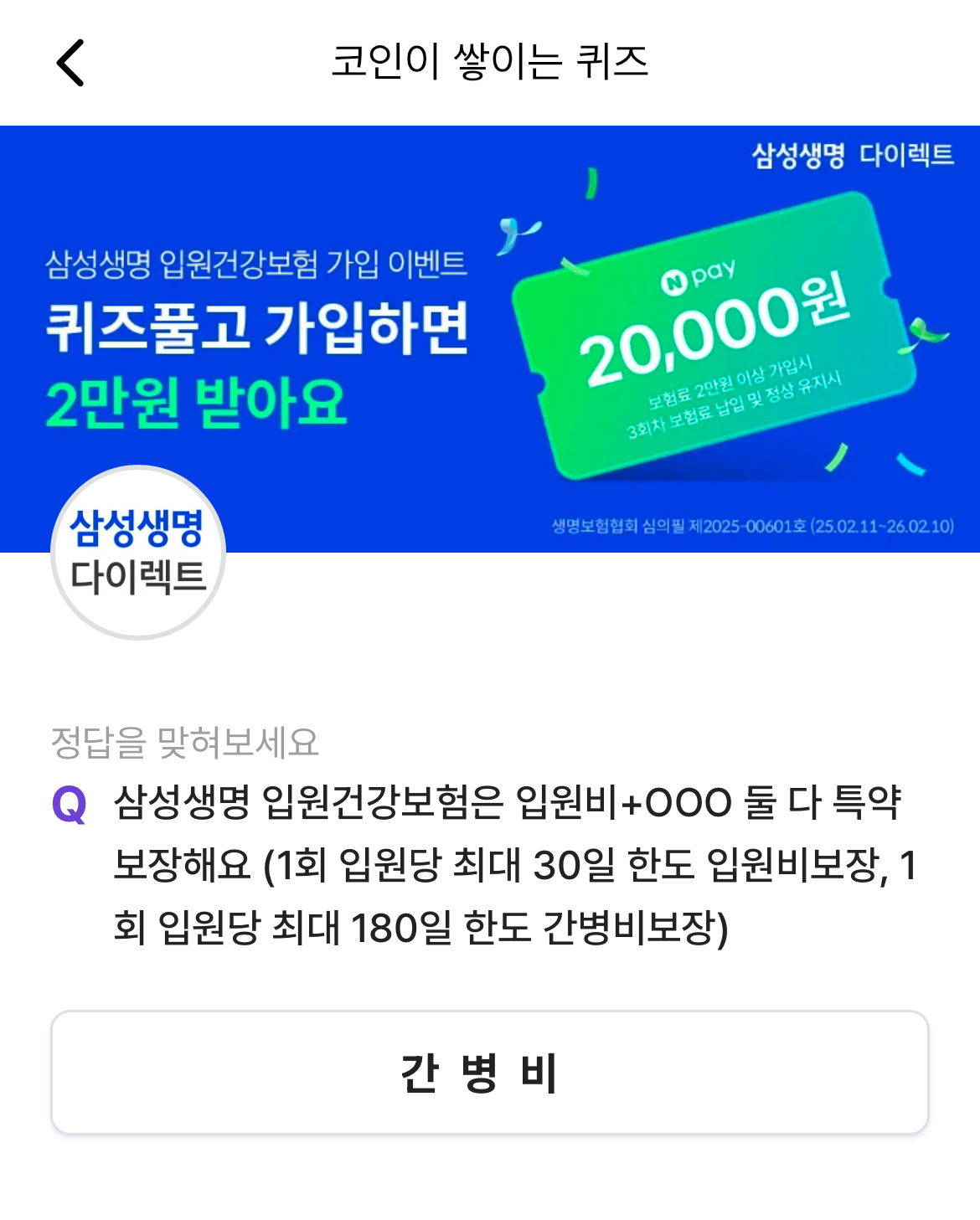 비트버니 코인이 쌓이는 퀴즈 정답 삼성생명 ㄱㅂㅂ