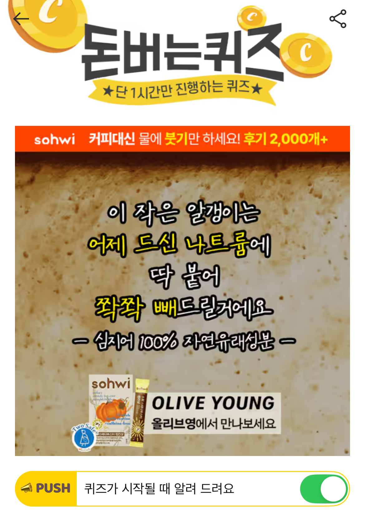 캐시워크 돈버는퀴즈 정답 소휘 펌킨샷 OOkcal