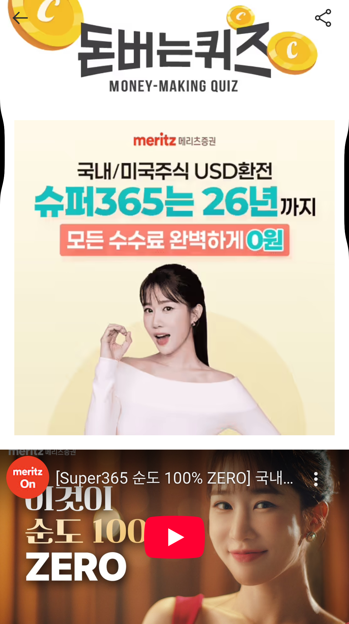 캐시워크 돈버는퀴즈 정답 메리츠증권 슈퍼365 신규 고객 000 / 00년 까지
