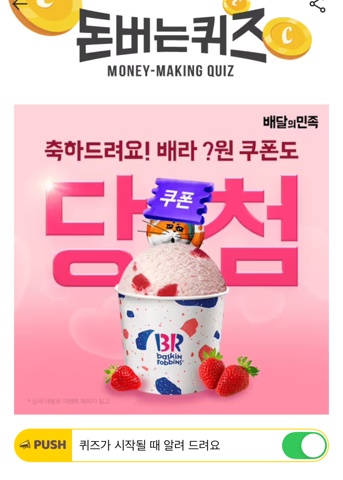 캐시워크 돈버는퀴즈 정답 배달의민족 배민 도미노피자 O만원 쿠폰
