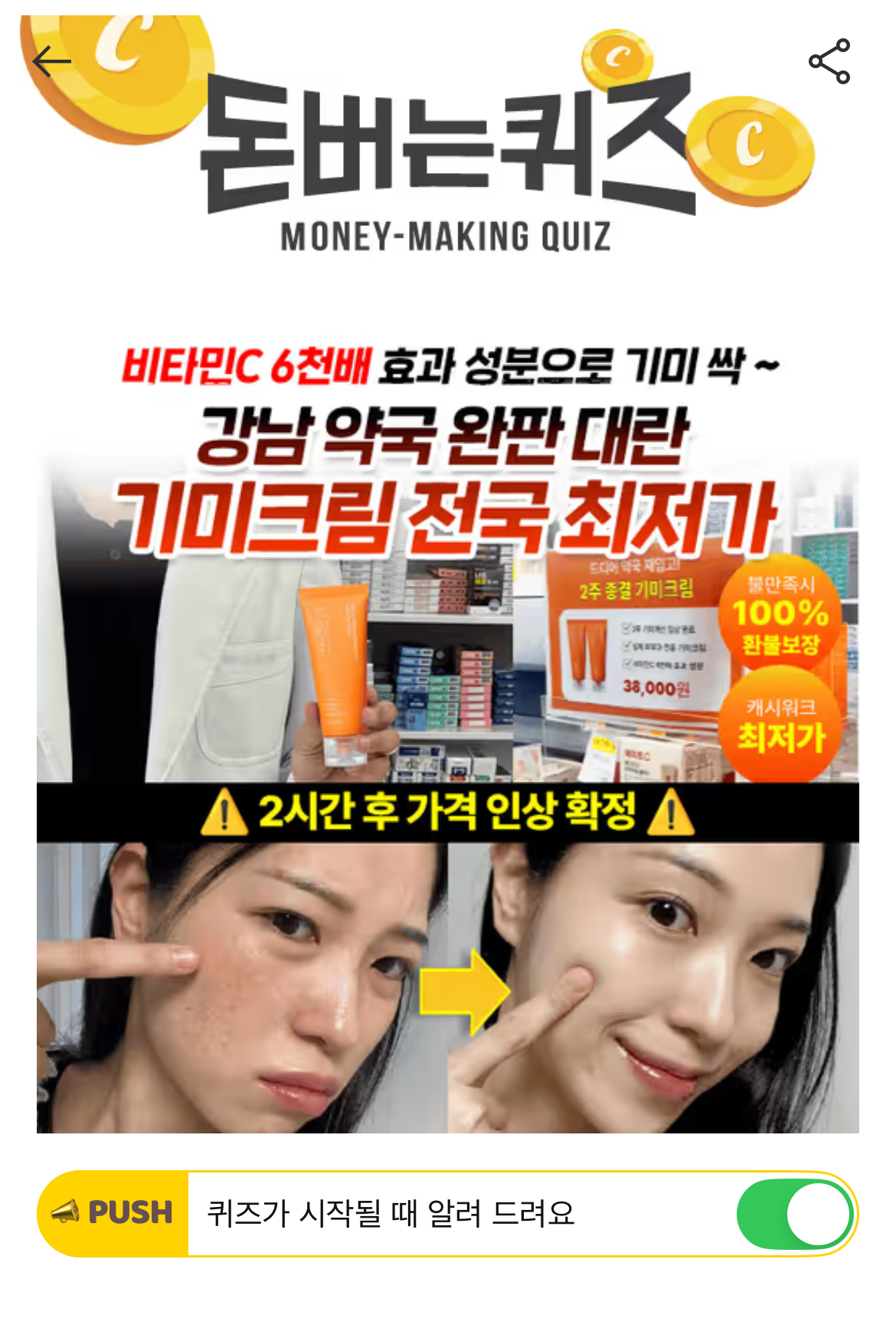 캐시워크 돈버는퀴즈 정답 성분에디터 기미크림