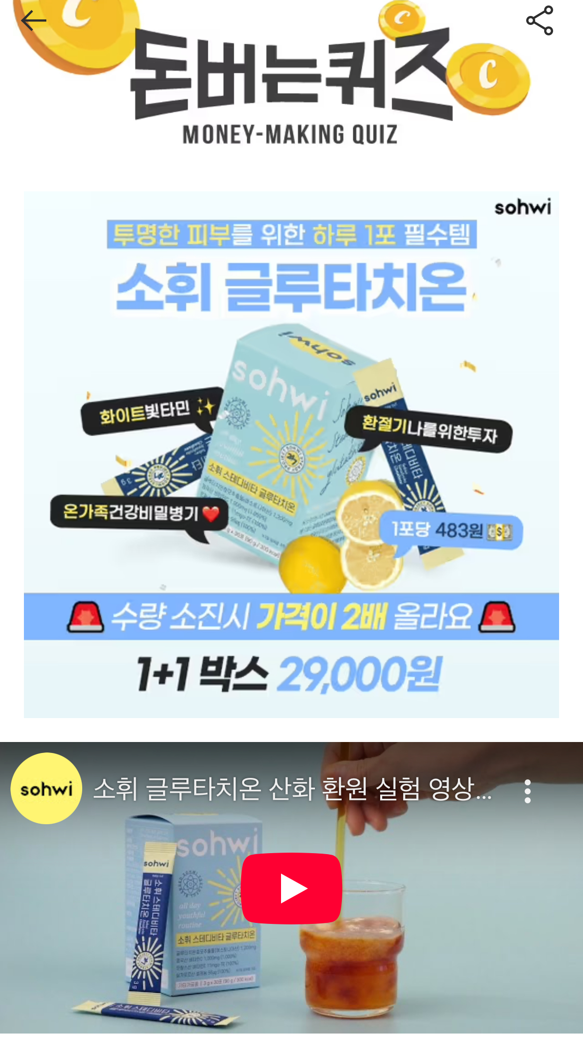 캐시워크 돈버는퀴즈 정답 소휘 글루타치온