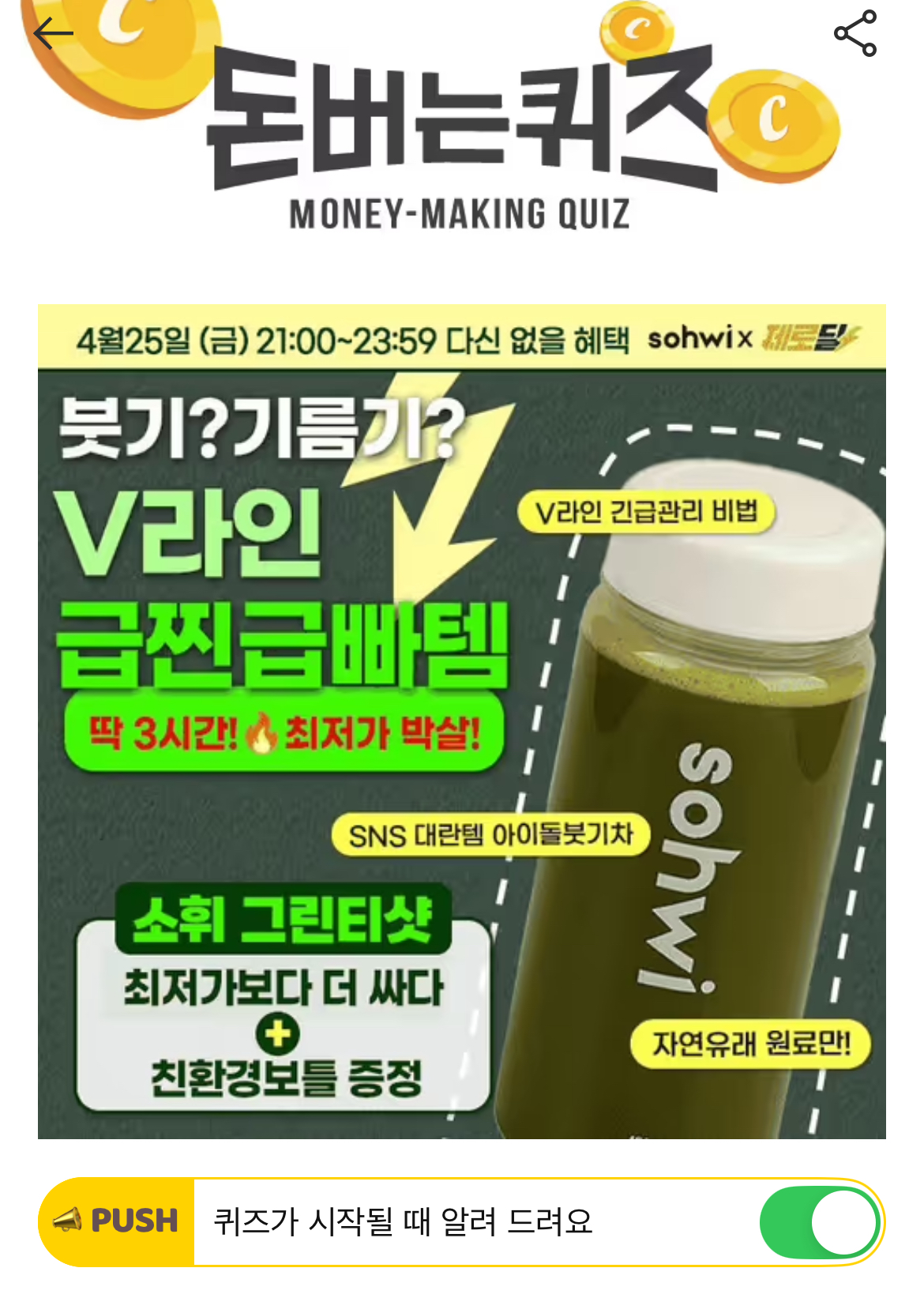 캐시워크 돈버는퀴즈 정답 소휘 그린티샷 OOO 음식