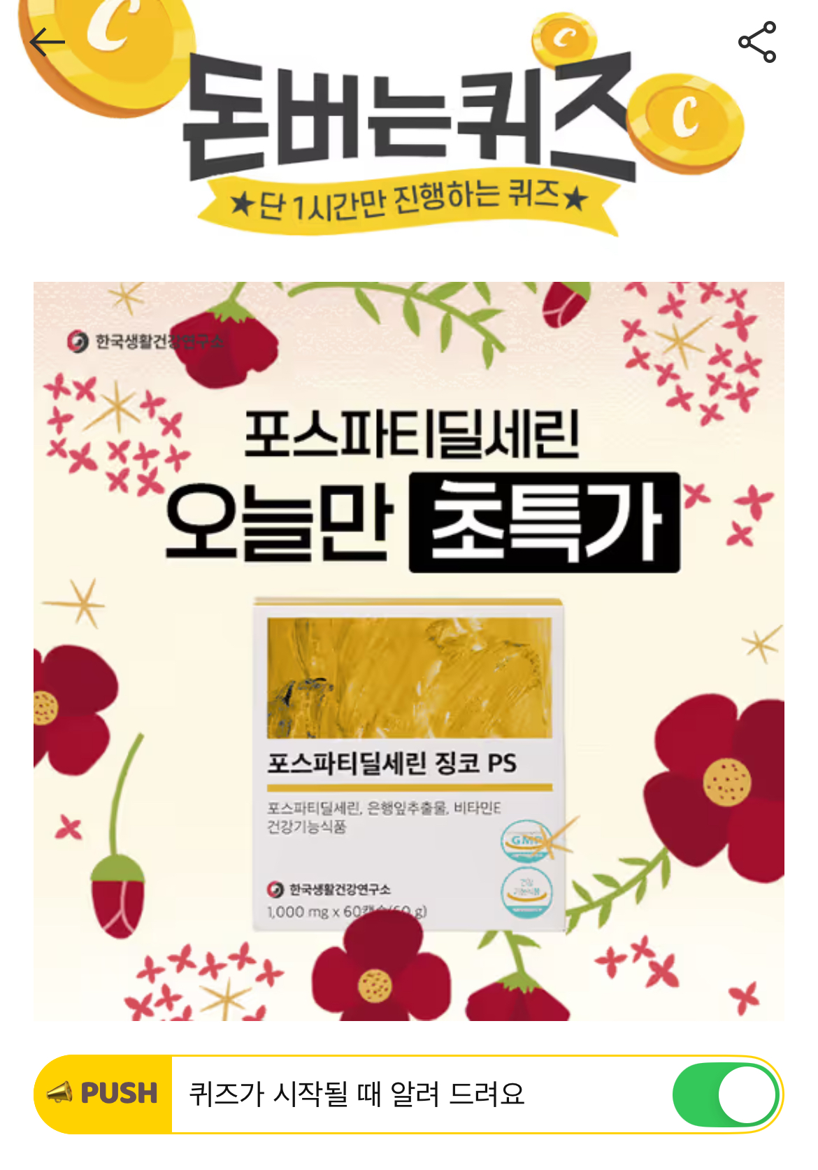 캐시워크 돈버는퀴즈 정답 포스파티딜세린 OO개선