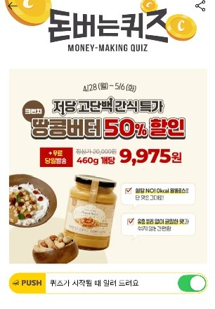 캐시워크 돈버는퀴즈 정답 리얼마이즈 땅콩버터 크런치