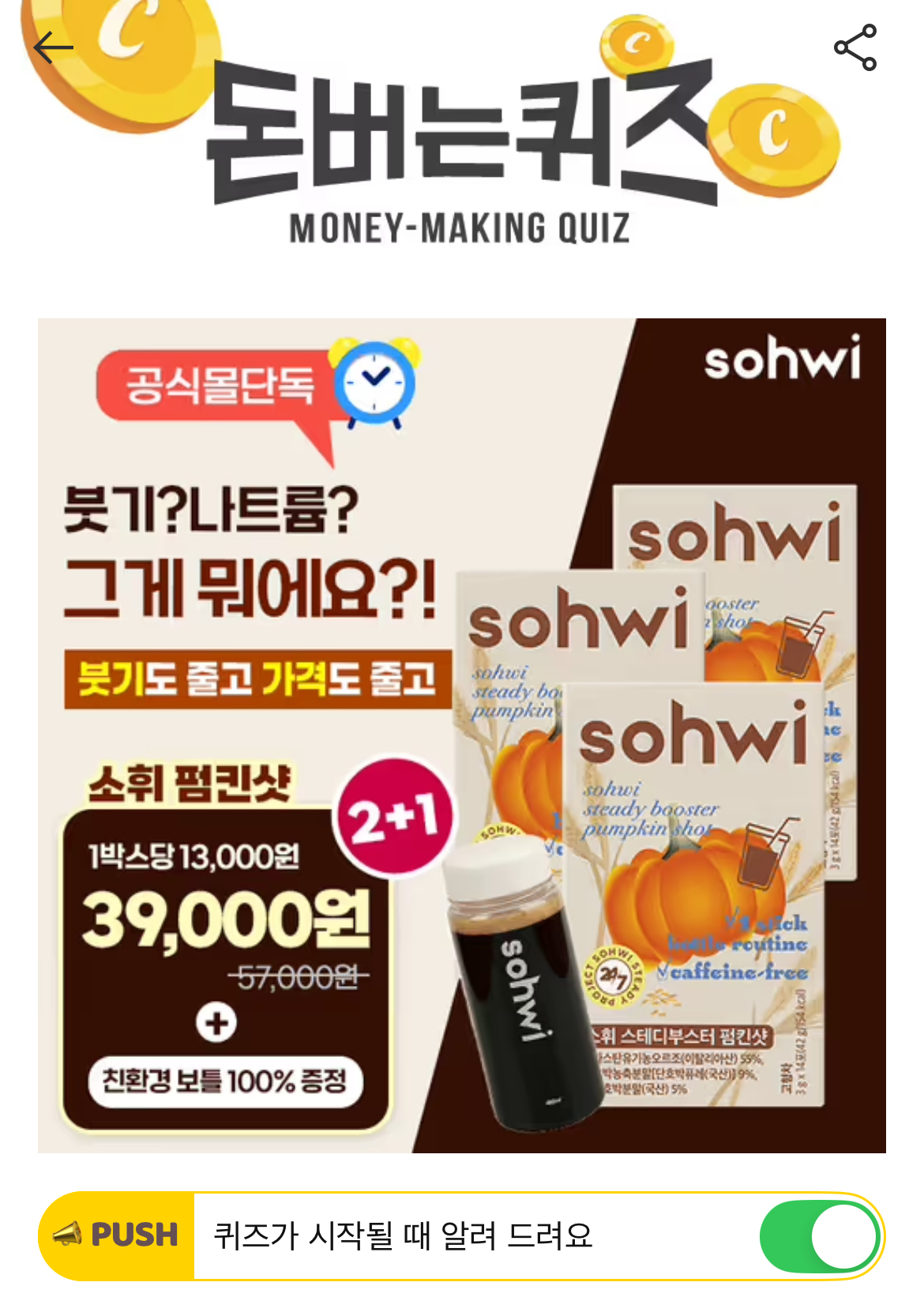 캐시워크 돈버는퀴즈 정답 소휘 펌킨샷