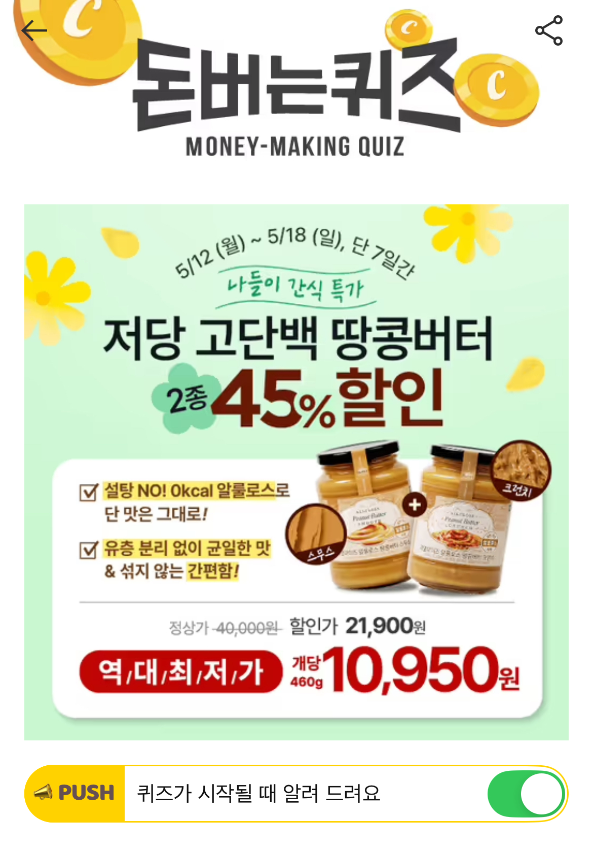 캐시워크 돈버는퀴즈 정답 리얼마이즈 알룰로스 땅콩버터