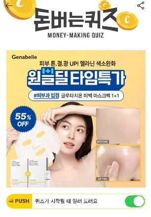 원쁠딜] 글루타치온 마스크팩, 최대 55% 할인 혜택 ️피부과 입점 브랜드 제나벨 글루타치온 미백 마스크팩은 피부 톤업에 도움되는 글루타치온이 고함량으로 함유되어 "톤+결+광 3중 미백케어"에 효과를 나타냅니다. 피부 잡티흔적 및 ooo완화 인체적용시험까지 완료하여 2주만에 조명킨 듯 밝아진 피부를 만나보실 수 있습니다. ooo은 무엇일까요?