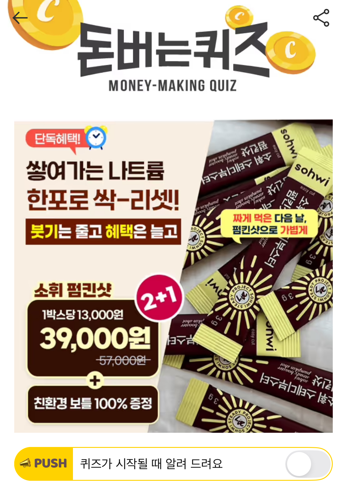 캐시워크 돈버는퀴즈 정답 소휘 펌킨샷