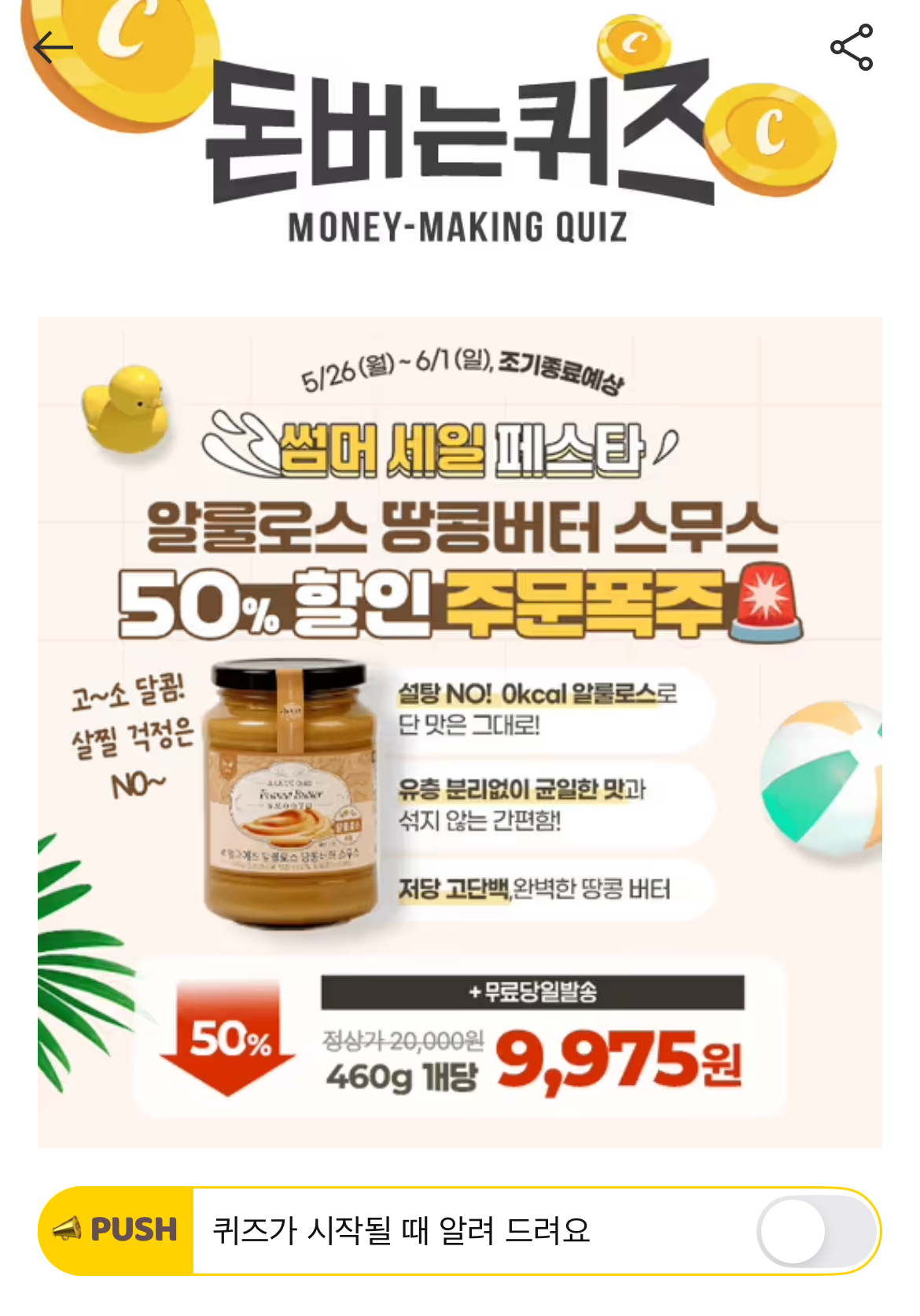 캐시워크 돈버는퀴즈 정답 썸머 세일 페스타 리얼마이즈 알룰로스 땅콩버터 스무스