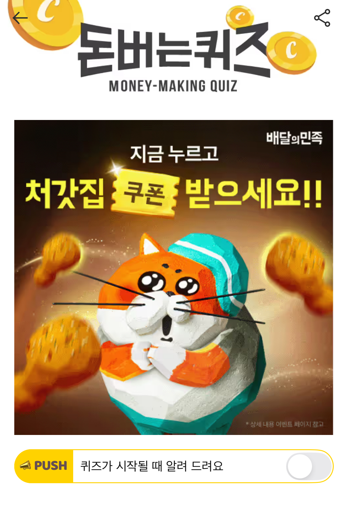 캐시워크 돈버는퀴즈 정답 배달의민족 빽보이피자 O천원 쿠폰