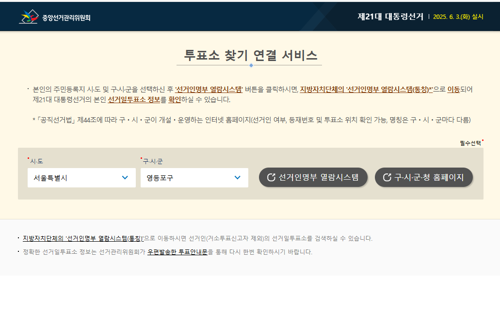 중앙선거관리위원회 - 투표소 찾기 연결 서비스 (옛, 내 투표소 찾기)