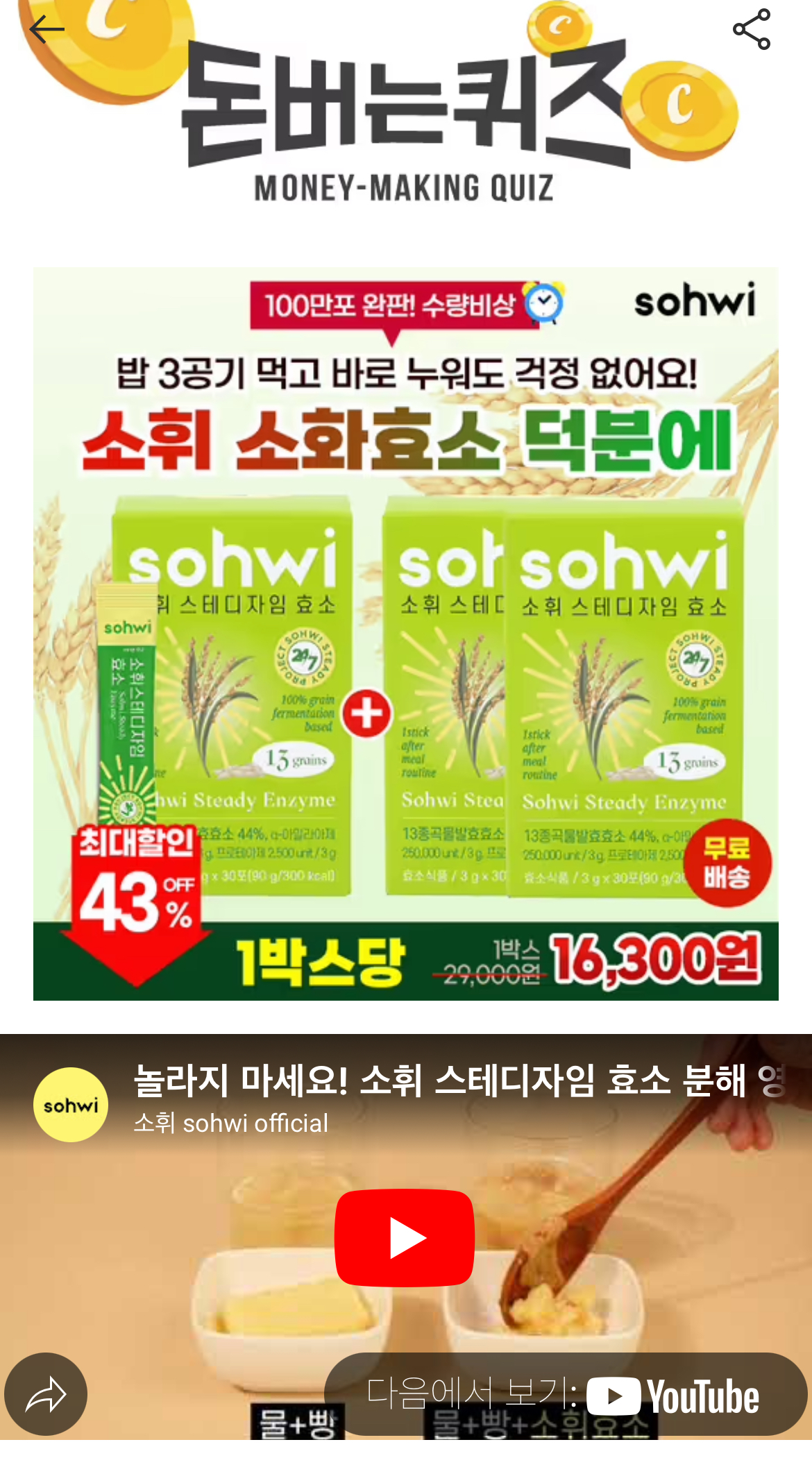 소화가 잘 안되고 더부룩하다구요!? 소휘 효소 식후 1포면 속이 편안해요! 리얼 후기만 2000개+ ⏰재고위험