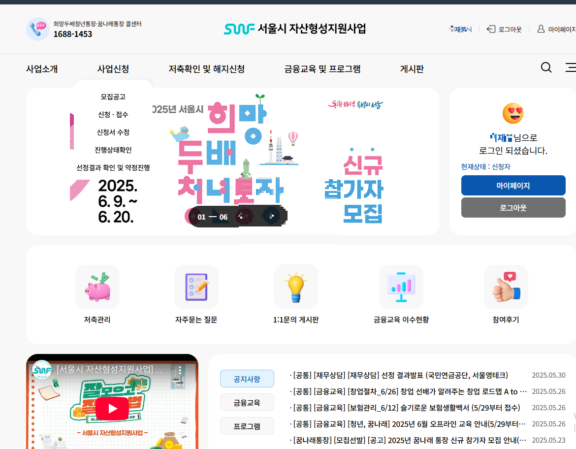 서울시에서 자산형성지원사업의 일환으로 꿈나래통장 참여자를 모집하고 있네요.
