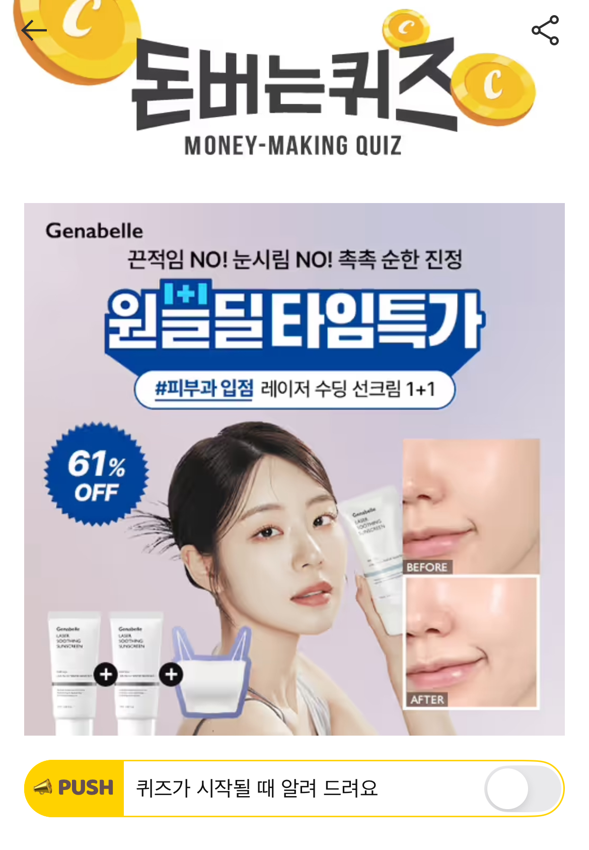 캐시워크 돈버는퀴즈 정답 제나벨 선크림