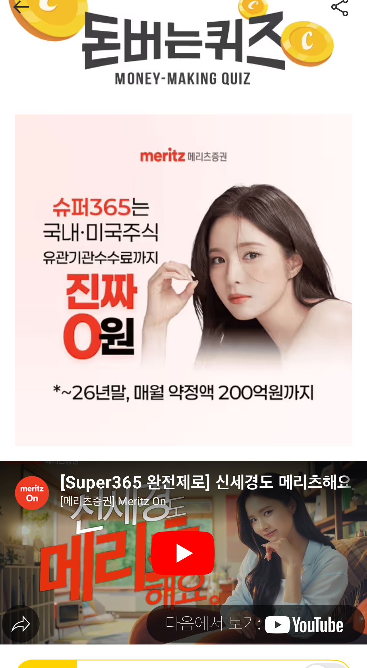 캐시워크 돈버는퀴즈 정답 메리츠증권 슈퍼365