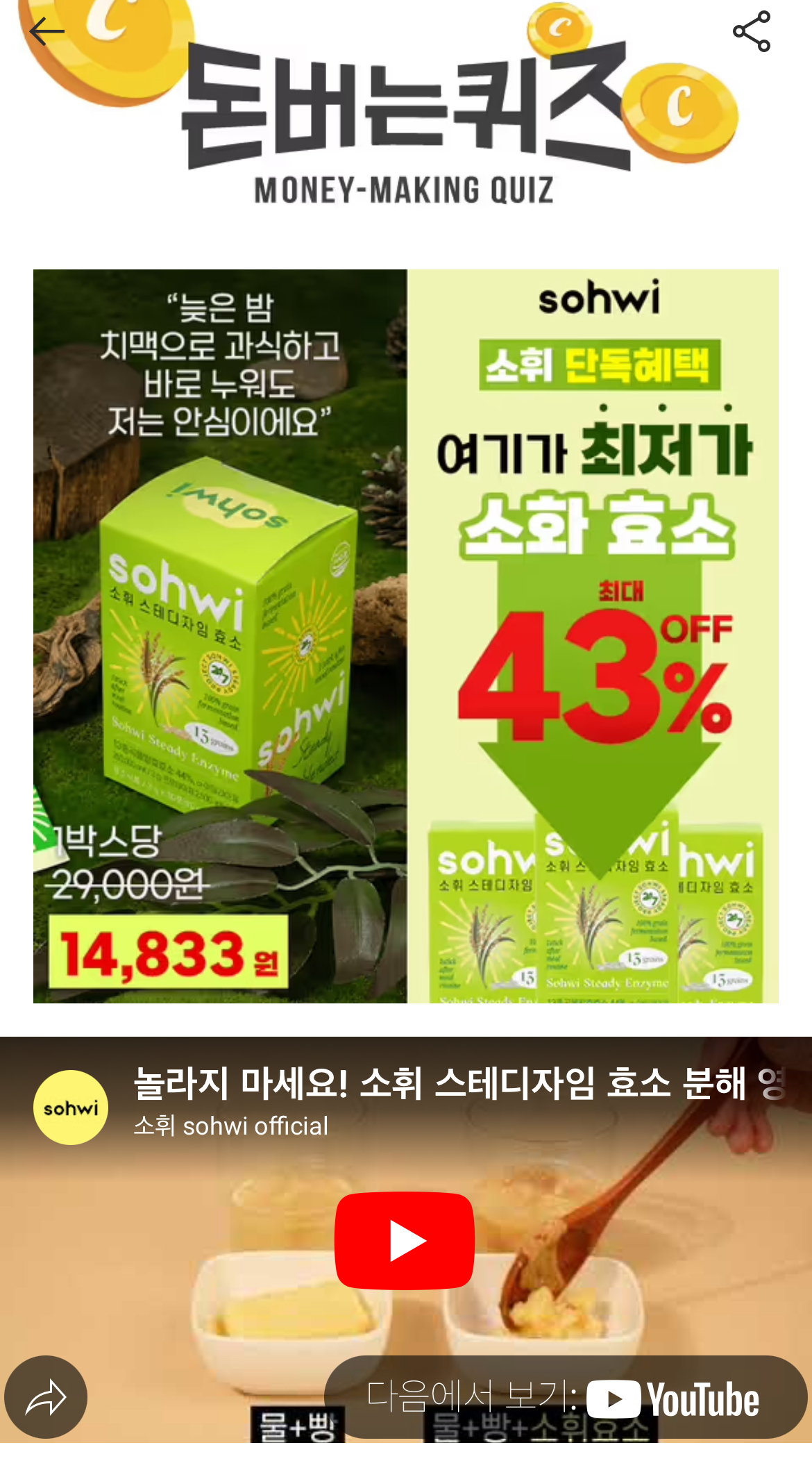 캐시워크 돈버는퀴즈 정답 소휘 소화효소