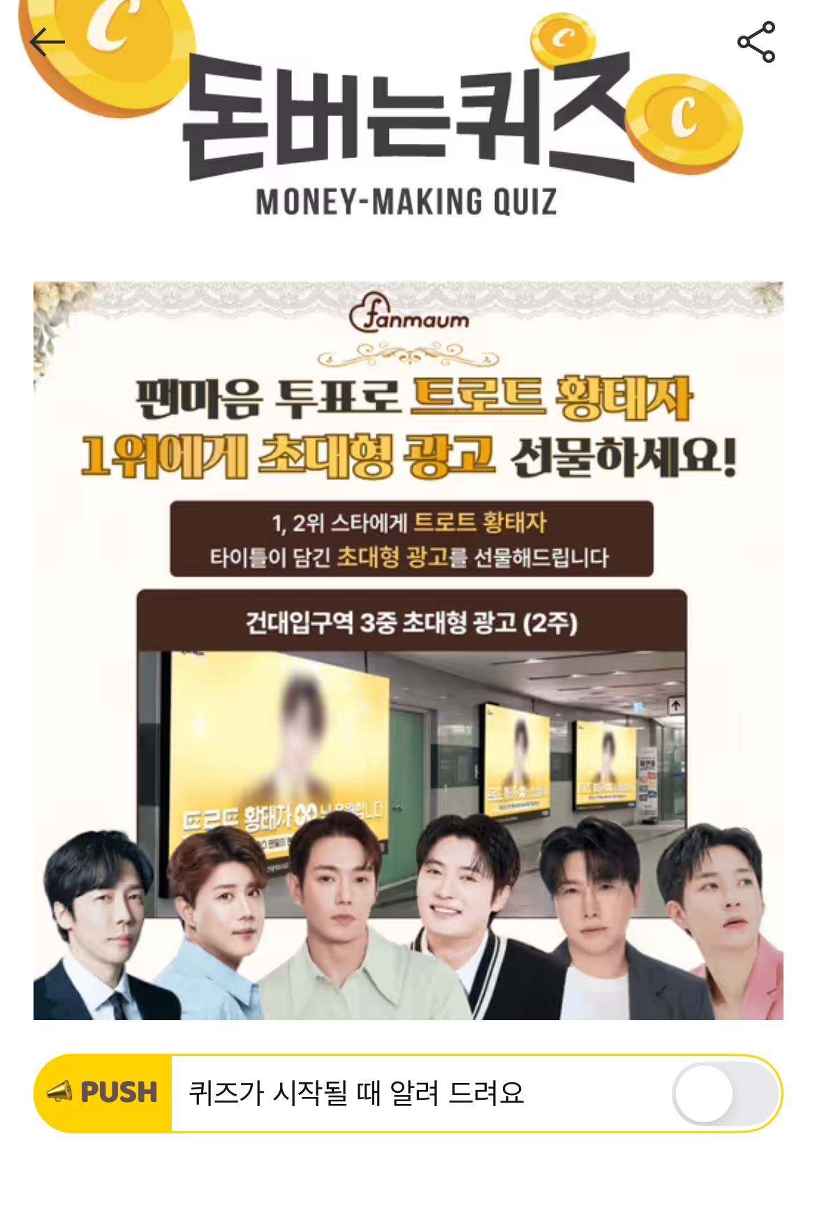캐시워크 돈버는퀴즈 정답 팬마음 트로트 OOO 투표 / OOOO역
