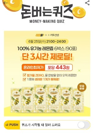 캐시워크 돈버는퀴즈 정답 제로딜 키토선생 유기농 레몬즙 약 OOg의 레몬 1개