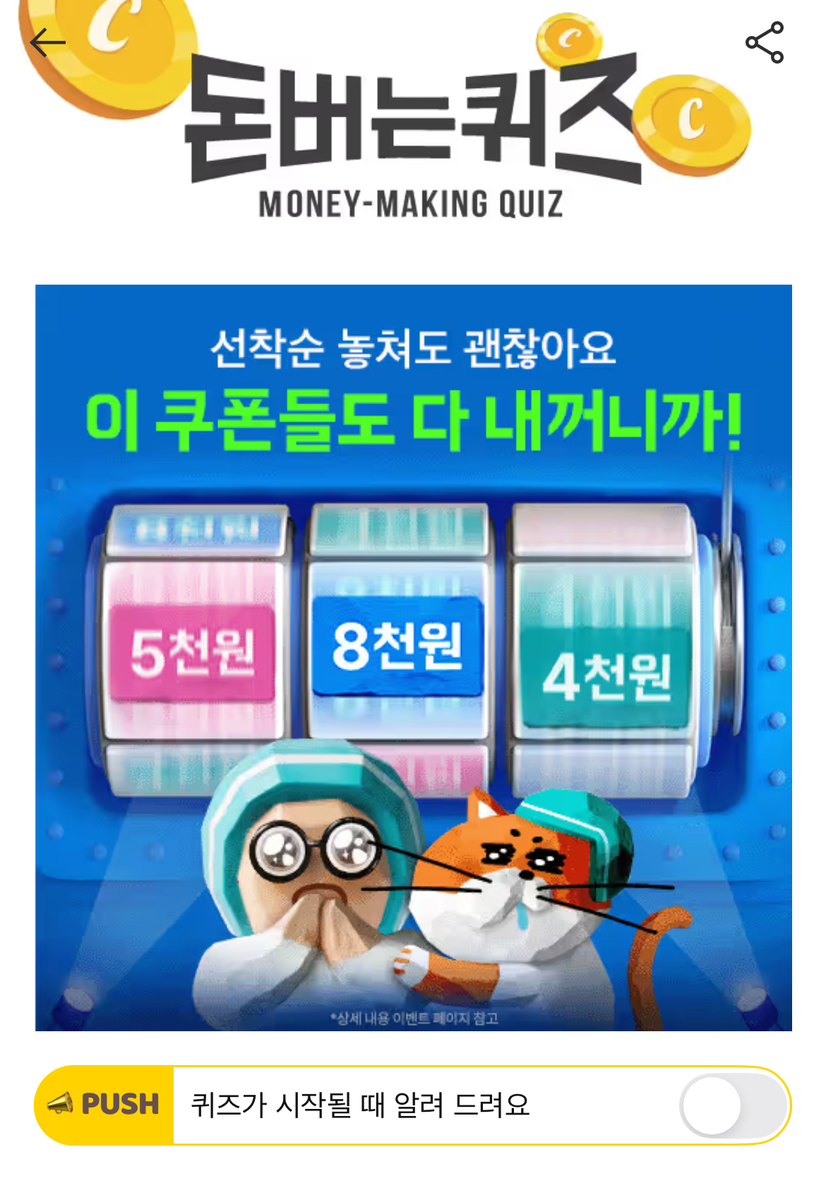 캐시워크 돈버는퀴즈 정답 배달의민족 배민 선착순 쿠폰