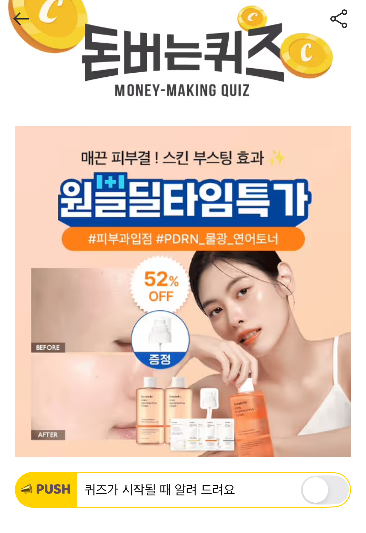 캐시워크 돈버는퀴즈 정답 제나벨 PDRN 연어토너 OOO성분