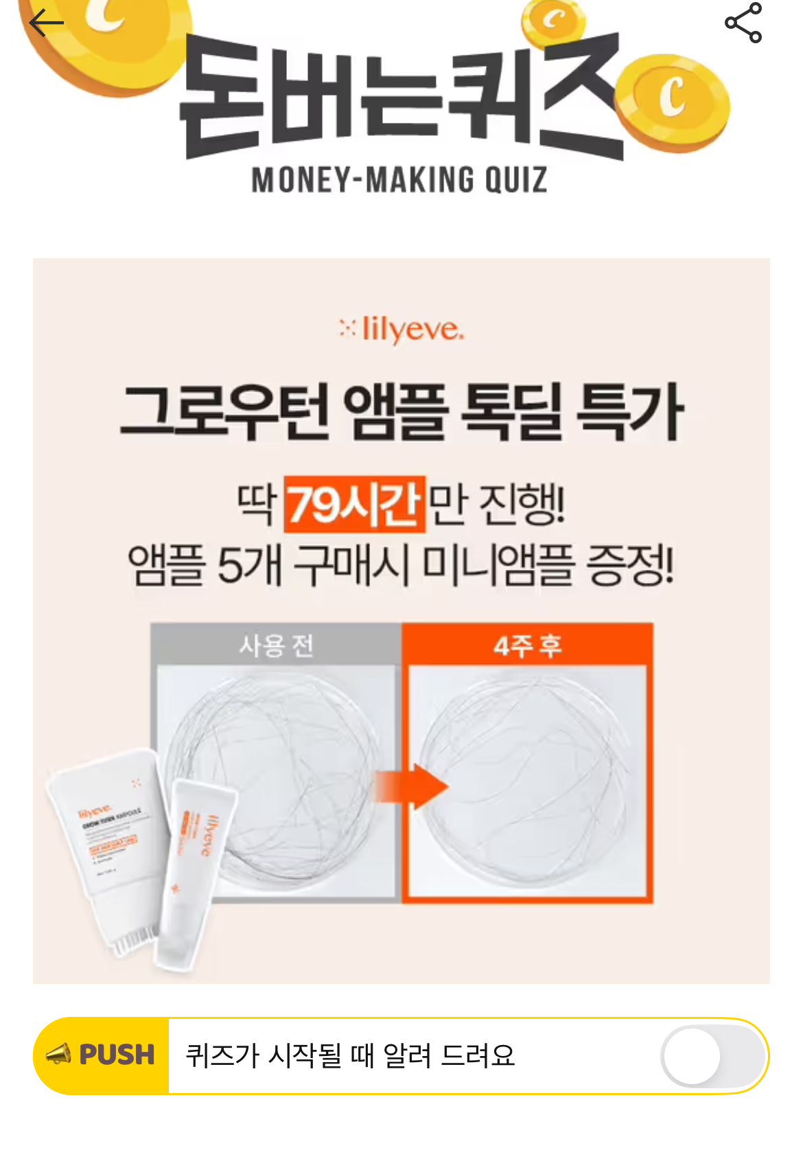 캐시워크 돈버는퀴즈 정답 그로우턴 앰플 ㅁㅂ / ㅂㄹㅅ