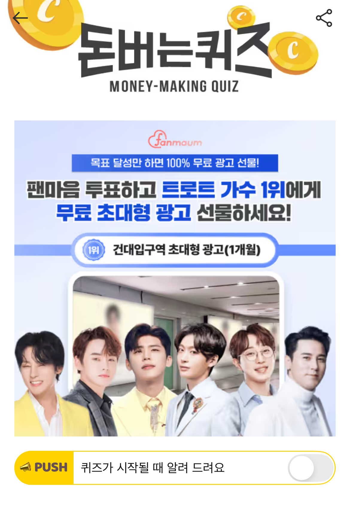 캐시워크 돈버는퀴즈 정답 팬마음 트로트 스타 45차 투표