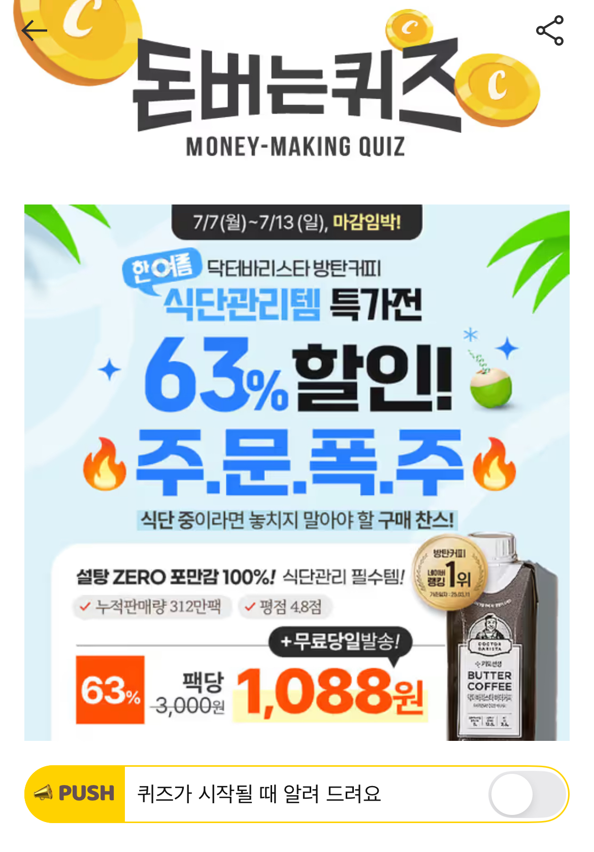 캐시워크 돈버는퀴즈 정답 닥터바리스타 방탄커피