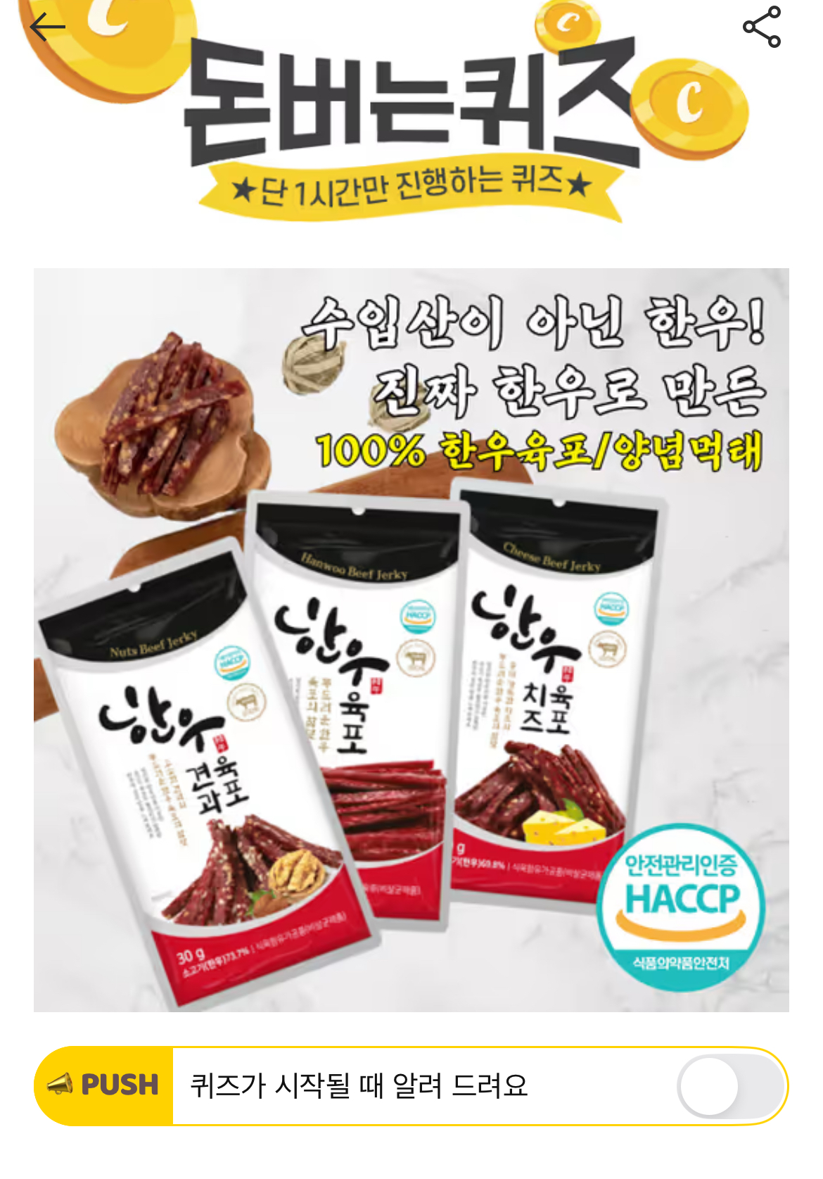 캐시워크 돈버는퀴즈 정답 한우육포