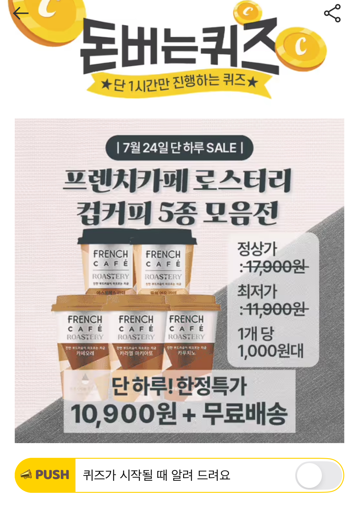 캐시워크 돈버는퀴즈 정답 남양 프렌치카페 컵커피 ㅇㅇ
