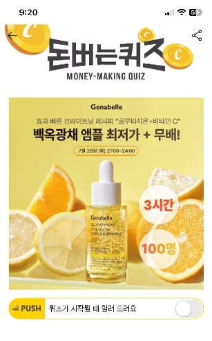 캐시워크 돈버는퀴즈 정답 캐시딜 타임특가 제나벨 글루타치온 비타민 글로우 캡슐 앰플 30ml OOOOPPM