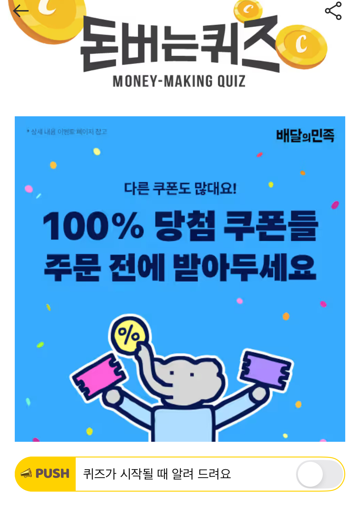 캐시워크 돈버는퀴즈 정답 배달의민족 배민
