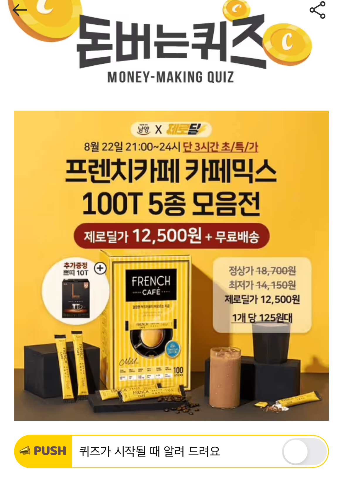 캐시워크 돈버는퀴즈 정답 남양 프렌치카페 카페믹스 ㅍㄹㅂㅇㅇㅌㅅ