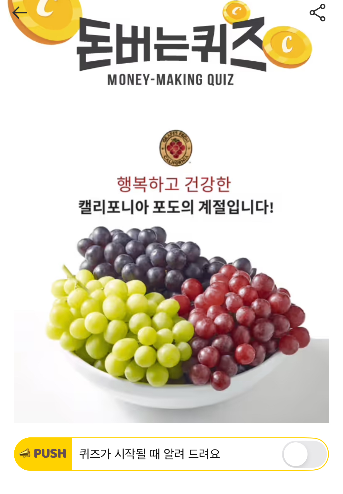 캐시워크 돈버는퀴즈 정답 캘리포니아 포도