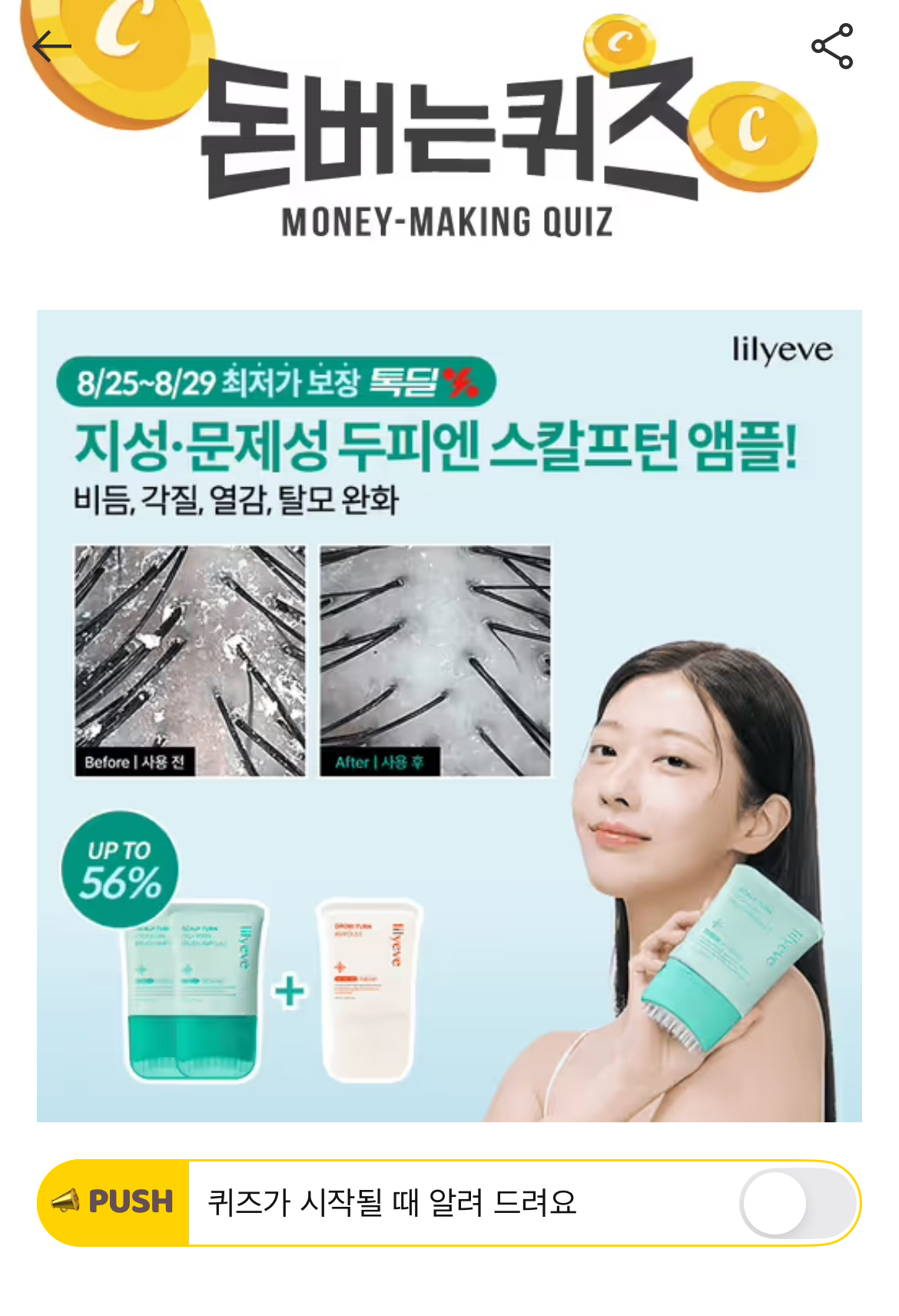 | 캐시워크 돈버는퀴즈 정답 김정문 알로에 선쿠션 O중 (1) | 2025.08.25 |