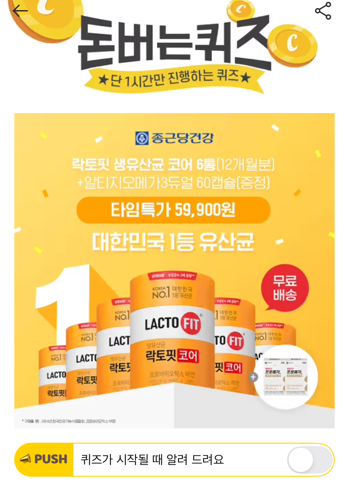 캐시워크 돈버는퀴즈 정답 종근당건강