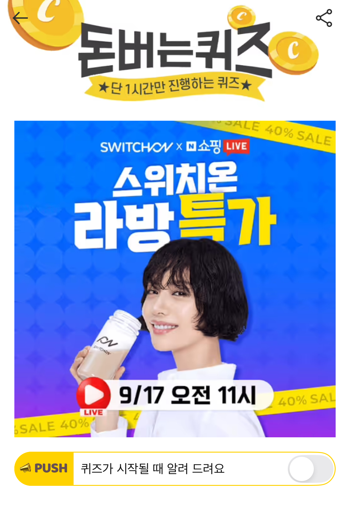 캐시워크 돈버는퀴즈 정답 스위치온 ㄴㄴ