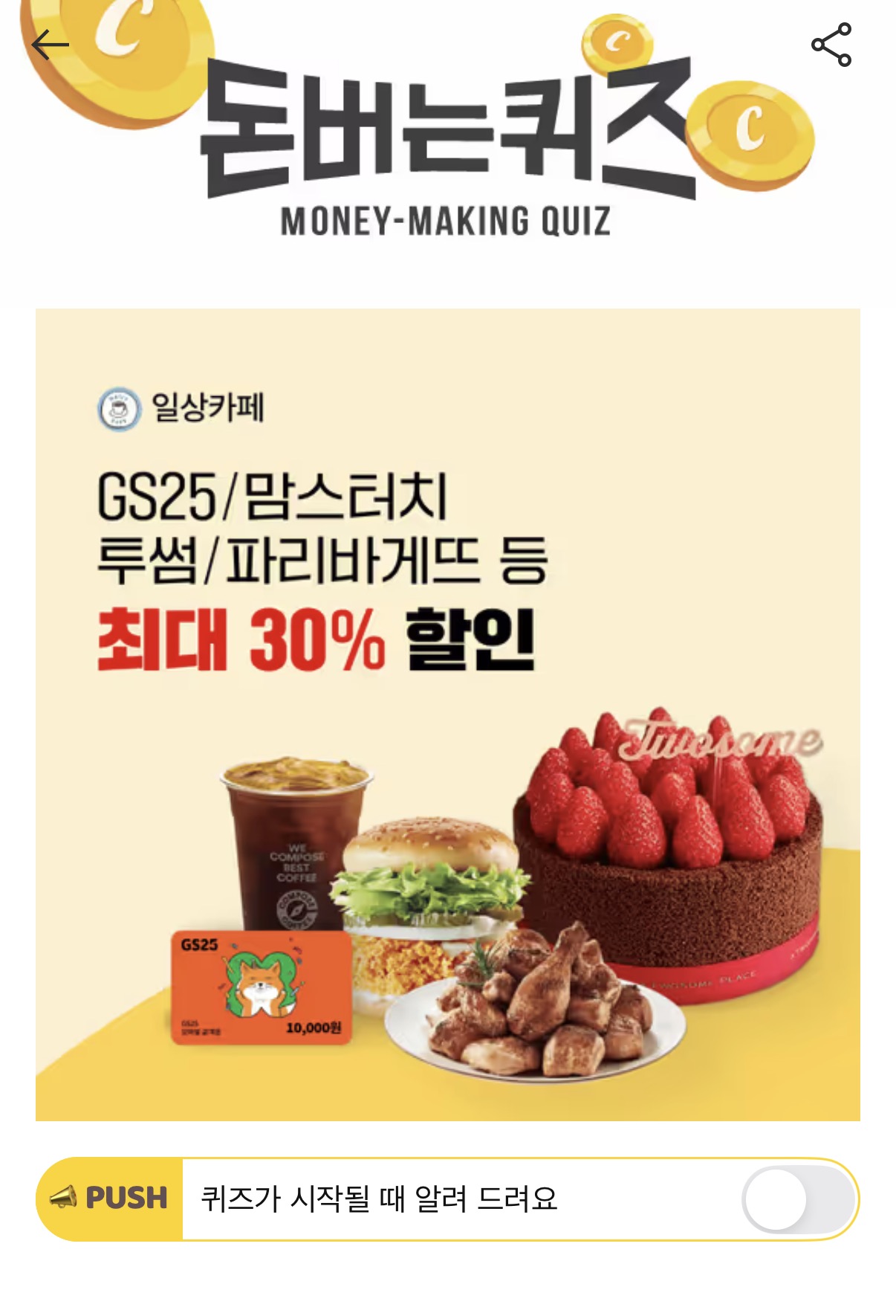 캐시워크 돈버는퀴즈 정답 일상카페 돈버는미션 ㅇㄴㅎㅇ